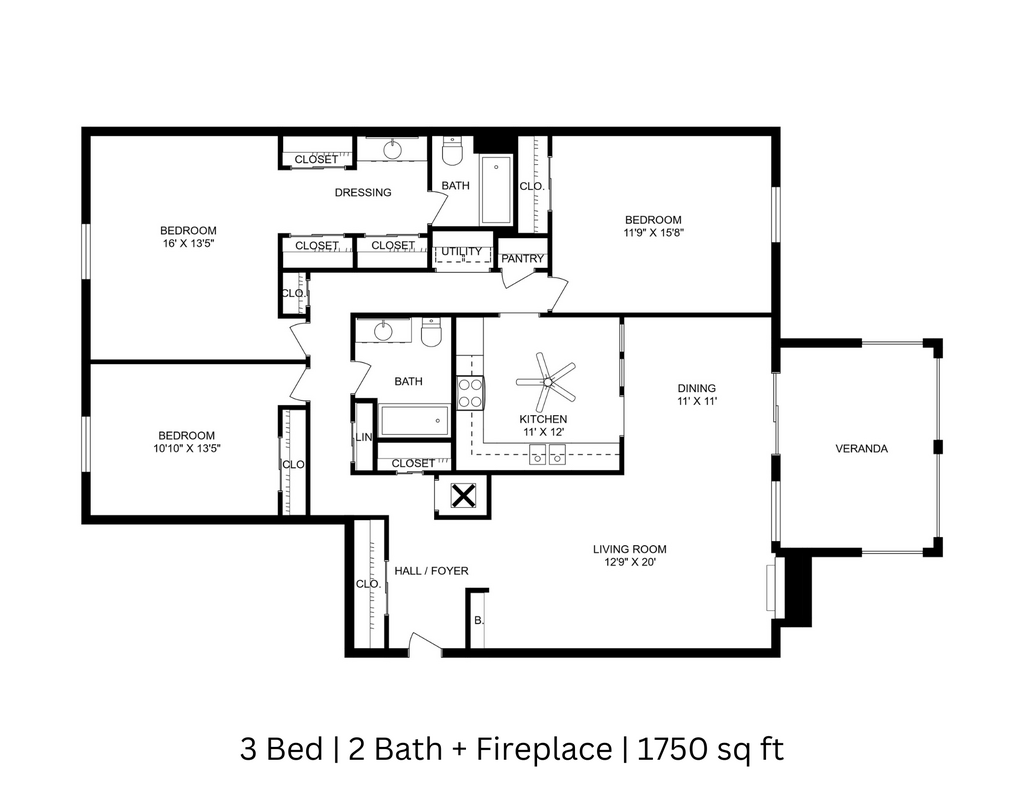Modelo de apartamento: 1 Bed | 1 Bath + Fireplace| 1170 sq ftLlame para Precios1 Dormitorio, 1 Baño, 1170 sq ftNo Disponible![]()