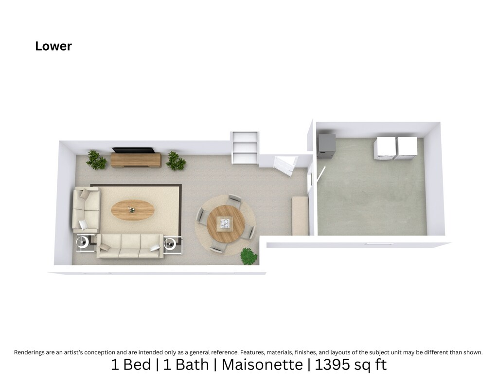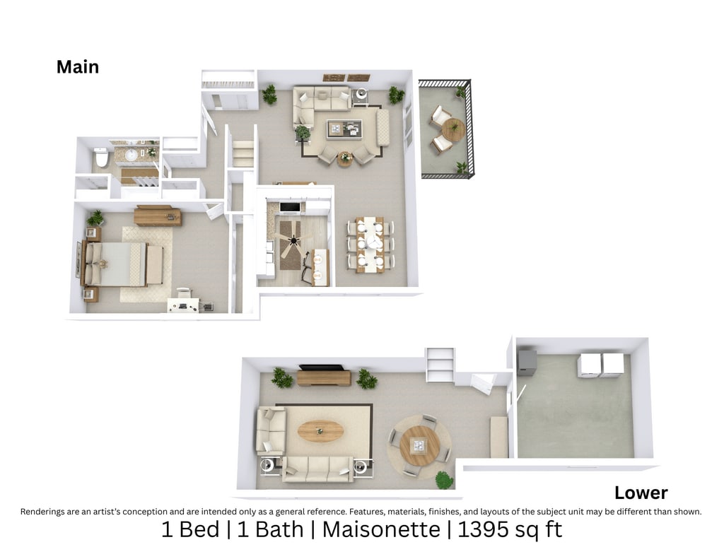 1 Bed | 1 Bath |Maisonette | 1395 sq ft - Plano 1 ![]()