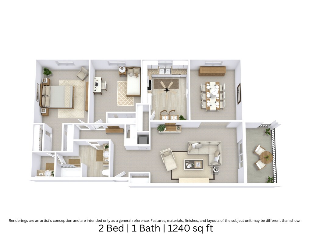 1 Dormitorio, 1 Baño, 1025 pies²Galería del Modelo