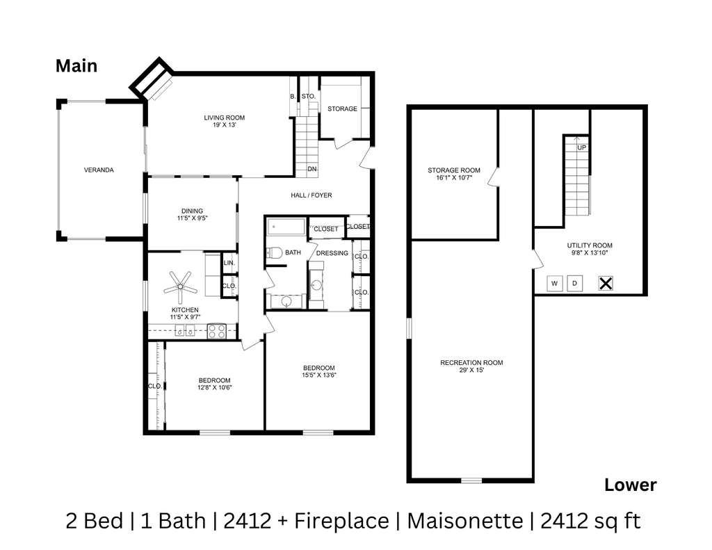 1 Bed | 1 Bath + 2 Fireplace |Maisonette |1825 ... - Plano 2 ![]()