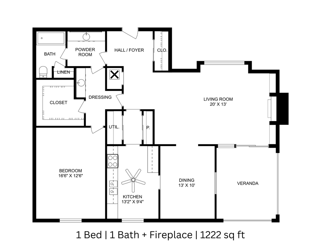 1 Bed | 1 Bath + Fireplace | 1222 sq ft - Plano 1 ![]()