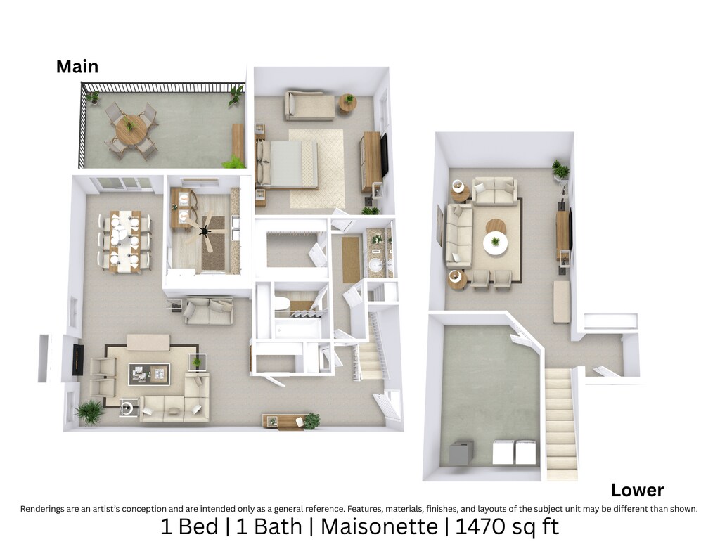 Modelo de apartamento: 1 Bed | 1 Bath |Maisonette |1470 sq ftLlame para Precios1 Dormitorio, 1 Baño, 1470 sq ftNo Disponible![]()