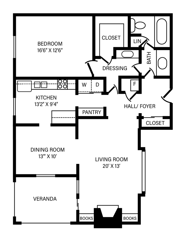 Modelo de apartamento: 1 Bed | 1 Bath + Fireplace| 1222 sq ftLlame para Precios1 Dormitorio, 1 Baño, 1222 sq ftNo Disponible![]()