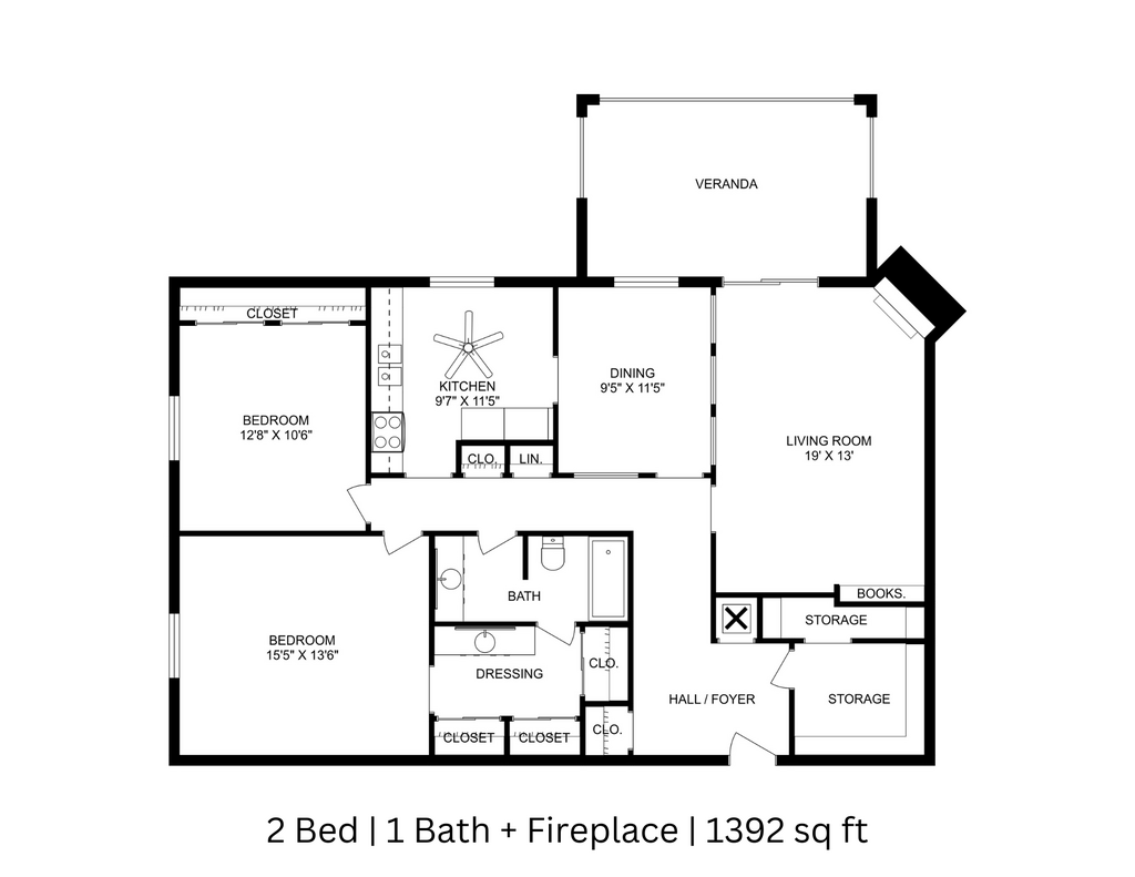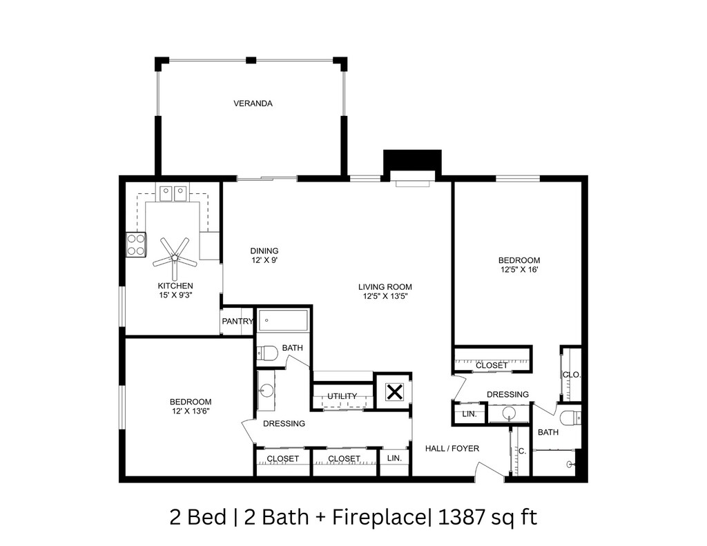 1 Bed | 1 Bath + Fireplace| 1170 sq ft - Plano 2 1 Bed | 1 Bath + Fireplace | 1222 sq ft