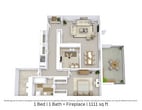 1 Bed | 1 Bath + Fireplace | 1111 sq ft | A - Plano 1 ![]()