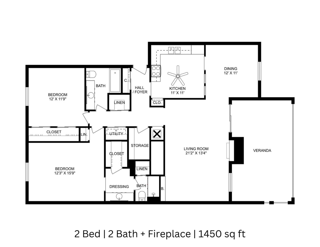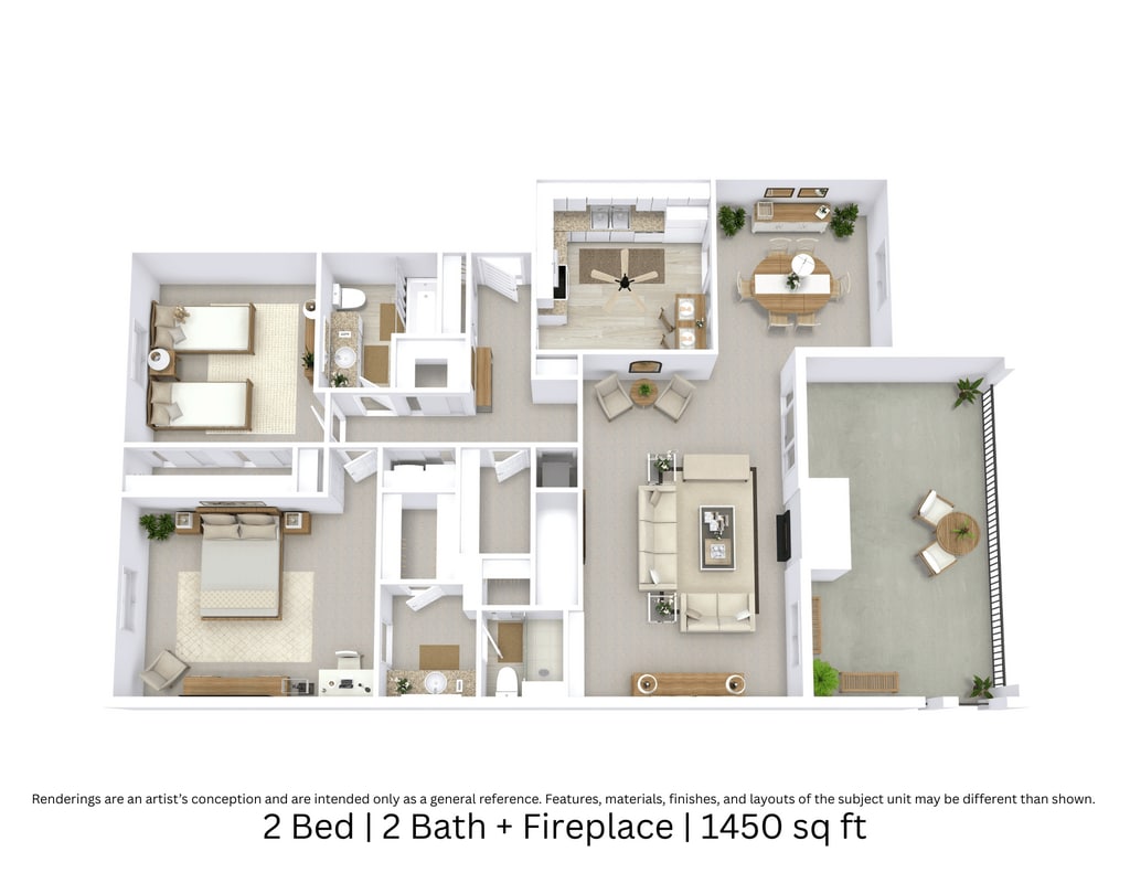 Ver Planos No Disponibles2 Bed | 2 Bath + Fireplace |1450 sq ft