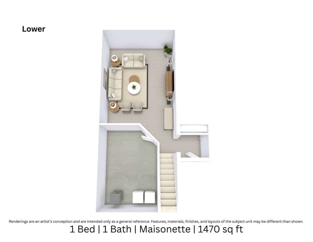 1 Bed | 1 Bath |Maisonette | 1395 sq ft - Plano 4 1 Bed | 1 Bath |Maisonette |1470 sq ft