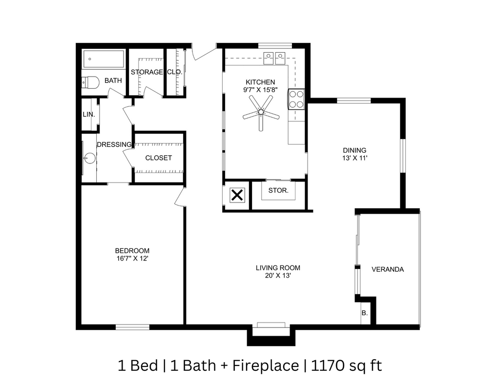 1 Bed | 1 Bath + Fireplace| 1170 sq ft - Plano 1 ![]()