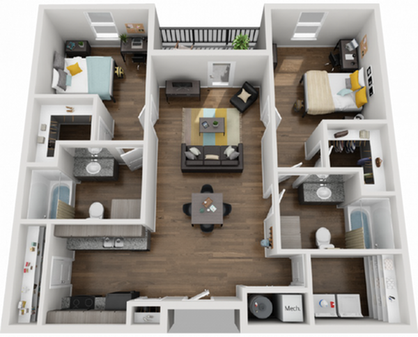Modelo de apartamento: 2x2$7102 Dormitorios, 2 Baños, 785 sq ftDisponible August 14, 2026![]()
