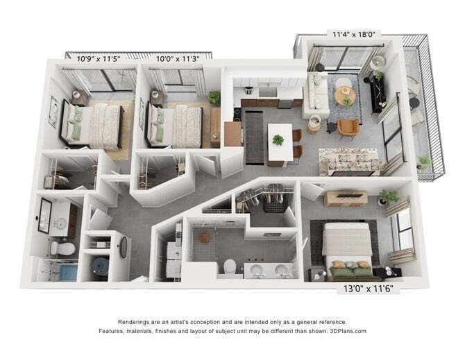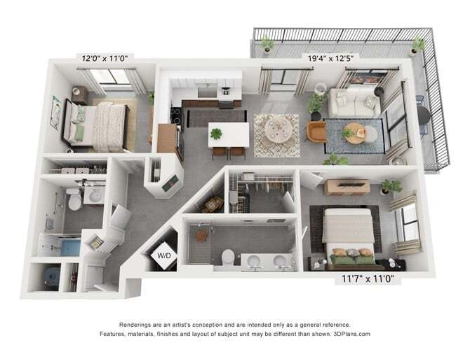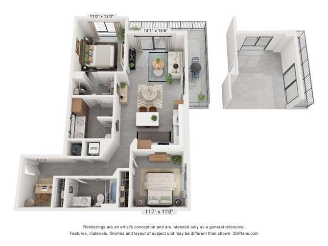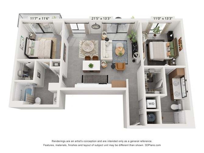 1 Dormitorio, 1 Baño, 725 pies²Disponible AhoraGalería del Modelo
