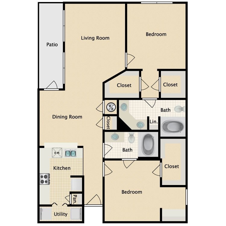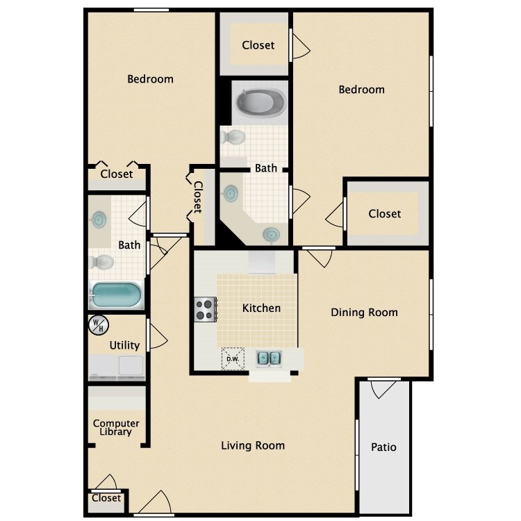 Modelo de apartamento: A1- RichmondDesde $1,2801 Dormitorio, 1 Baño, 638 sq ftDisponible Ahora![]()