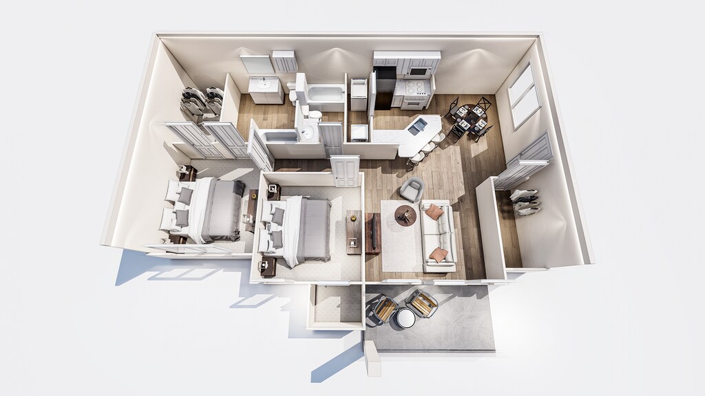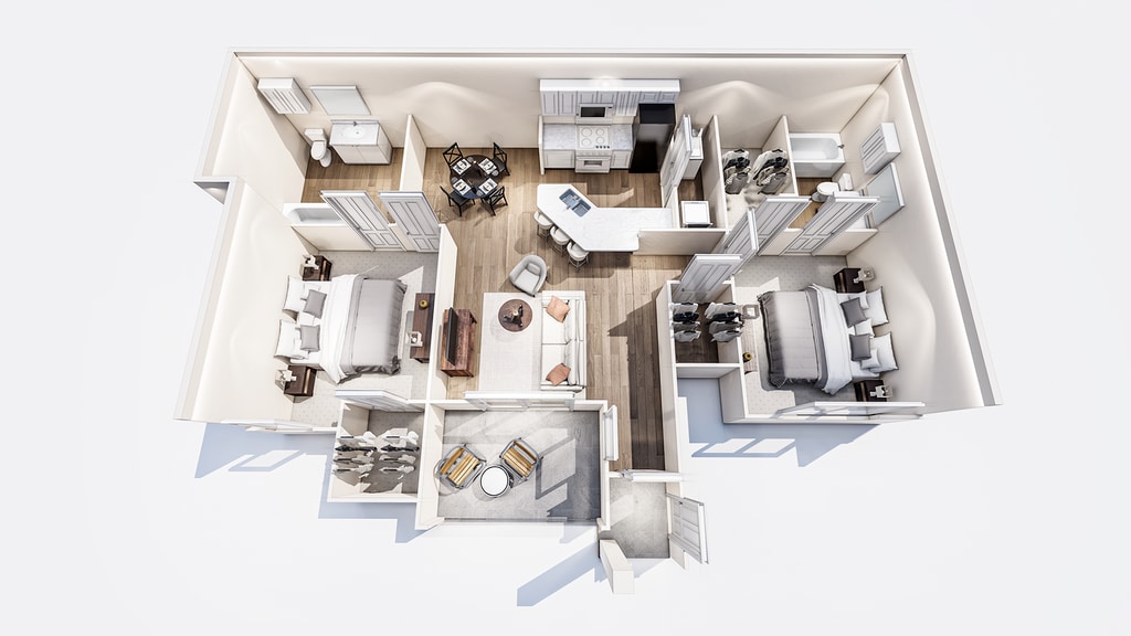 2 Dormitorios, 2 Baños, 1076 pies²El más grandeEsta opción tiene las unidades más grandes para este modeloGalería del Modelo