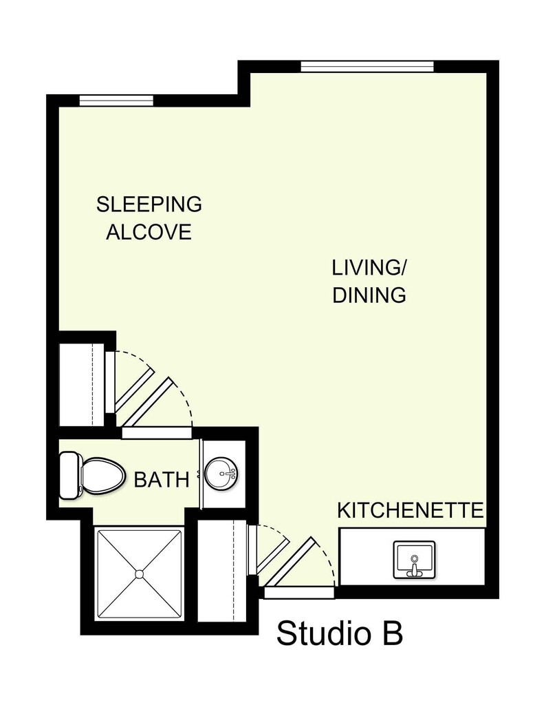 Estudio, 1 Baño, 375-500 pies²Galería del Modelo