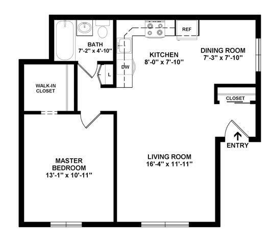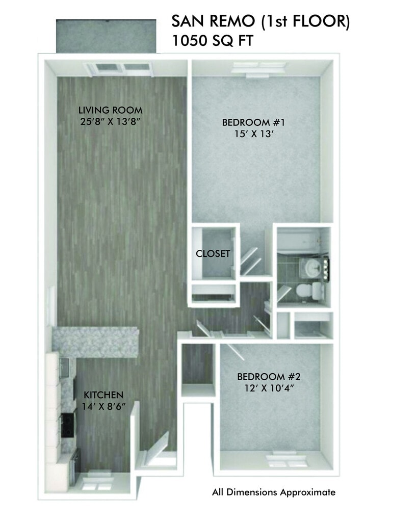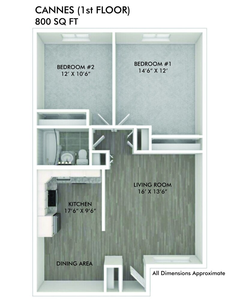 1 Dormitorio, 1 Baño, 850 pies²Disponible AhoraGalería del Modelo
