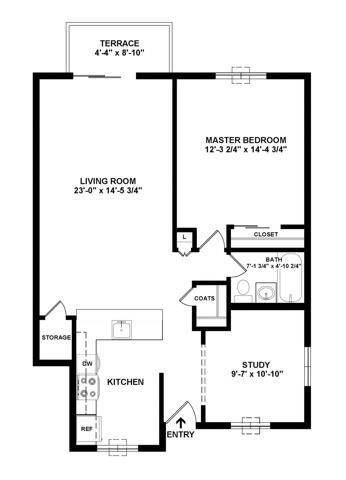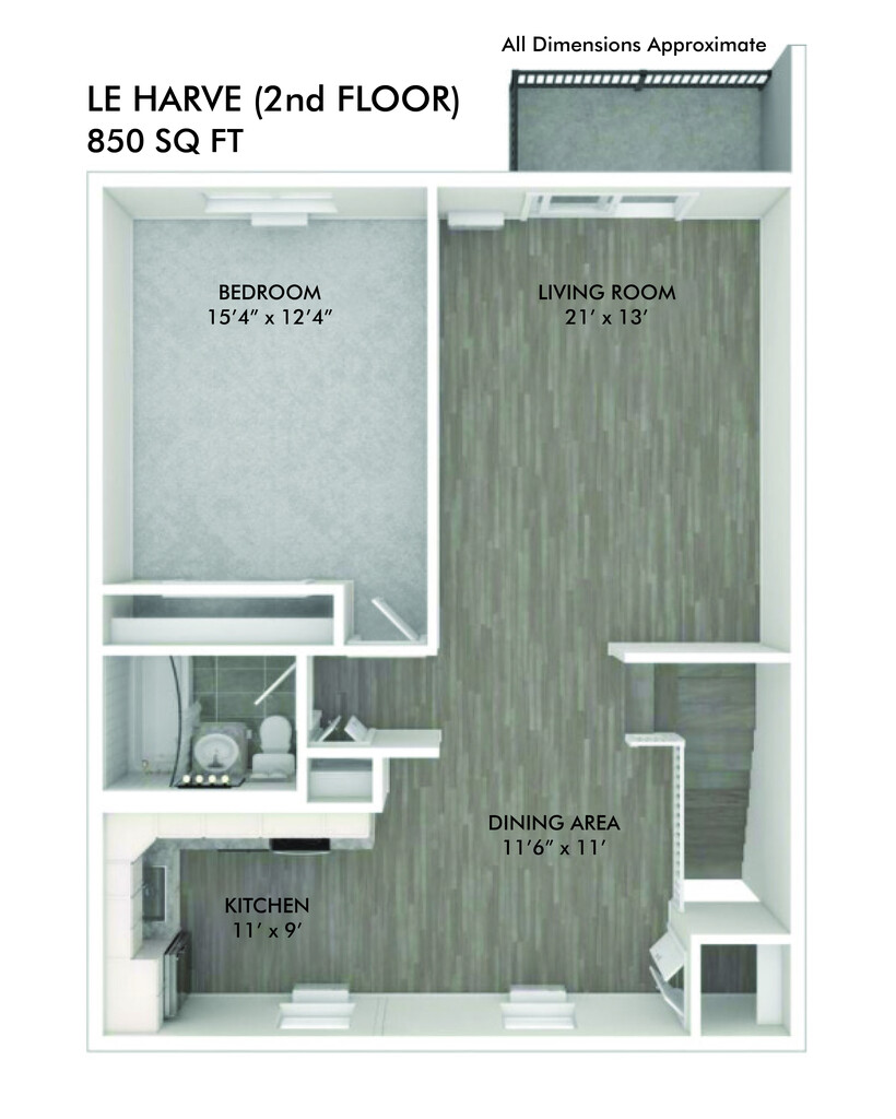 Modelo de apartamento: LE HAVRE$2,5501 Dormitorio, 1 Baño, 850 sq ftDisponible Ahora![]()