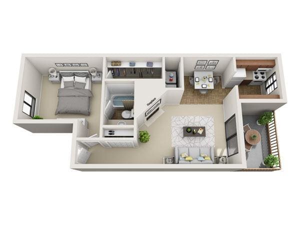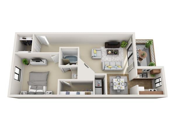 1 Dormitorio, 1 Baño, 767 pies²Disponible AhoraGalería del Modelo