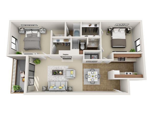 Modelo de apartamento: CamelotDesde $1,1021 Dormitorio, 1 Baño, 727 sq ftDisponible Ahora![]()