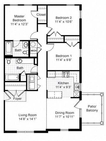 Modelo de apartamento: 2 Bedroom Garden Tax Credit***$1,0002 Dormitorios, 1 Baño, 843-875 sq ftDisponible Ahora![]()