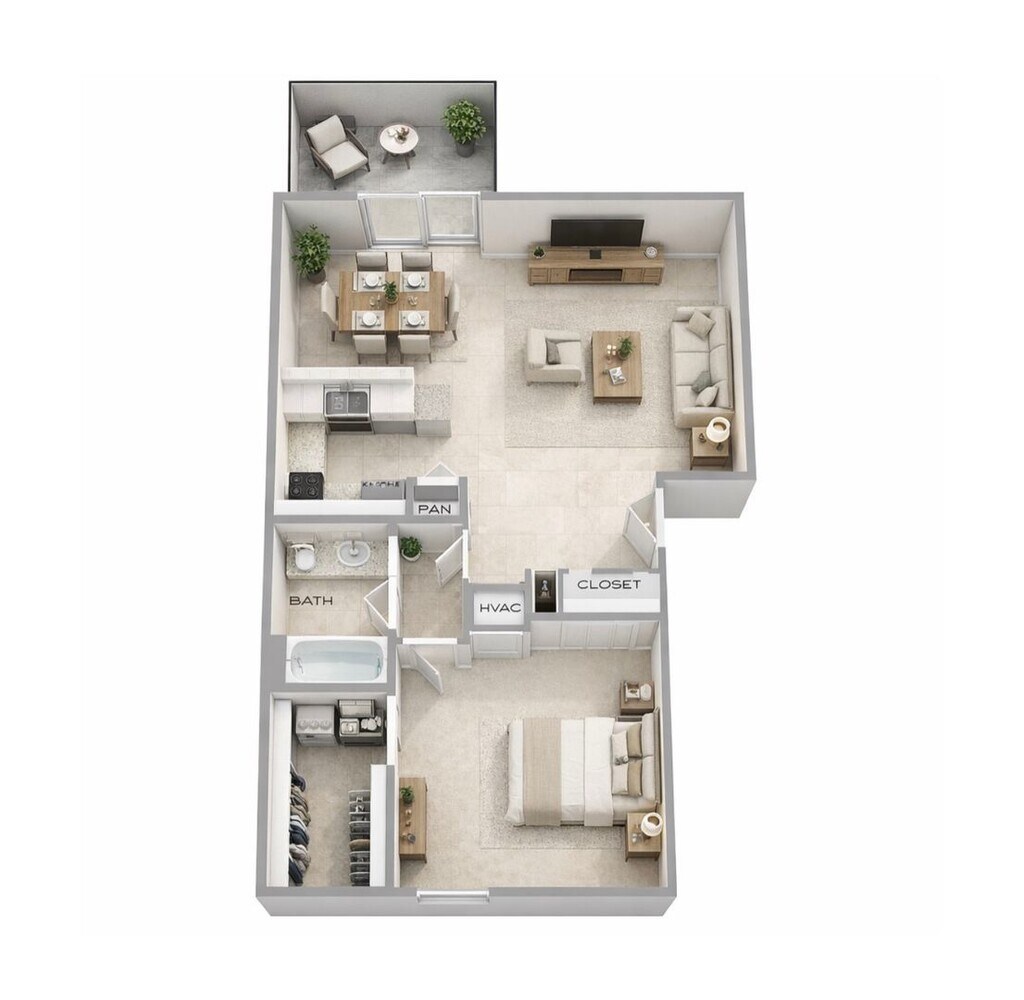 1 Dormitorio, 1 Baño, 725 pies²Disponible AhoraGalería del Modelo