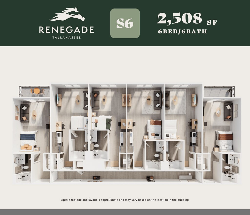 Modelo de apartamento: S66 Dormitorios, 6 Baños, 2508 sq ftDisponible Ahora![]()