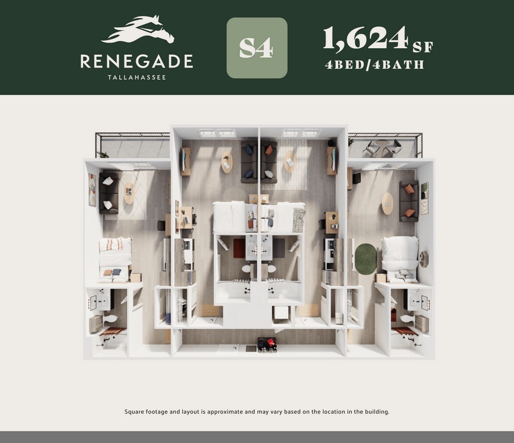 Modelo de apartamento: S44 Dormitorios, 4 Baños, 1624 sq ftDisponible Ahora![]()