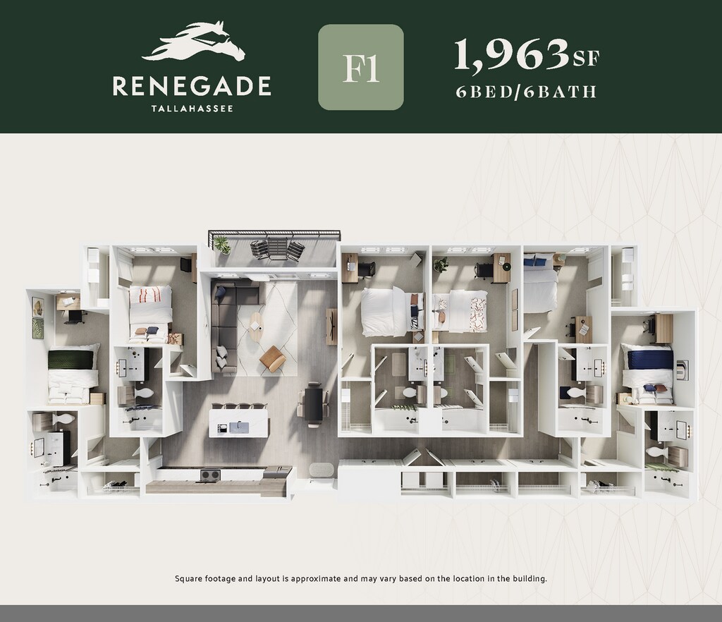 S5 - Plano 1 Unidad de apartamento: PrivateModelo de apartamento: S55 Dormitorios, 5 Baños, sq ftDisponible AhoraUnidad de apartamento: PrivateModelo de apartamento: S55 Dormitorios, 5 Baños, sq ftDisponible August 23, 20266 Dormitorios