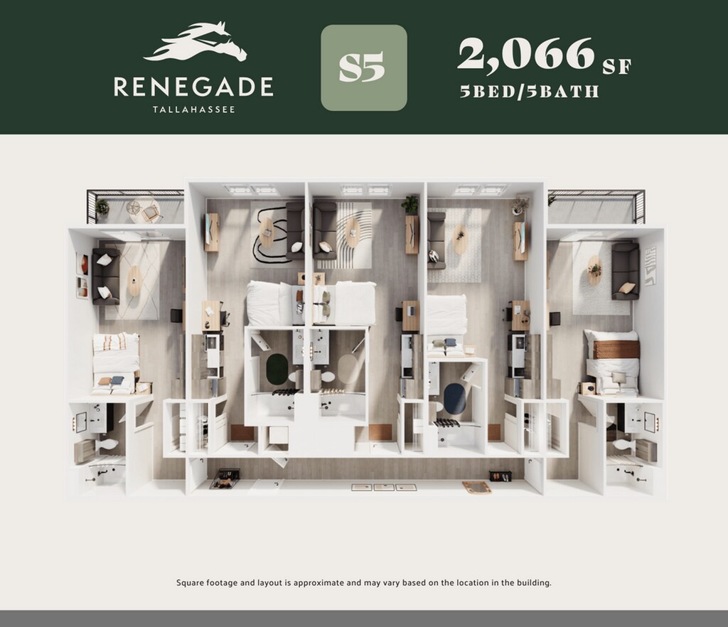 Modelo de apartamento: S55 Dormitorios, 5 Baños, 2066 sq ftDisponible Ahora![]()