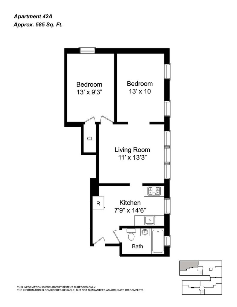 Unidad de apartamento: A42Modelo de apartamento: 2 BR (418)$2,1952 Dormitorios, 1 Baño, 585 sq ftDisponible Ahora![]()