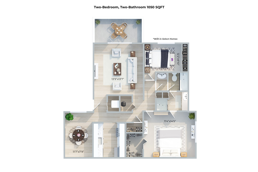 Modelo de apartamento: Two BedroomDesde $1,8502 Dormitorios, 1.5 Baños, 1050 sq ftDisponible Ahora![]()