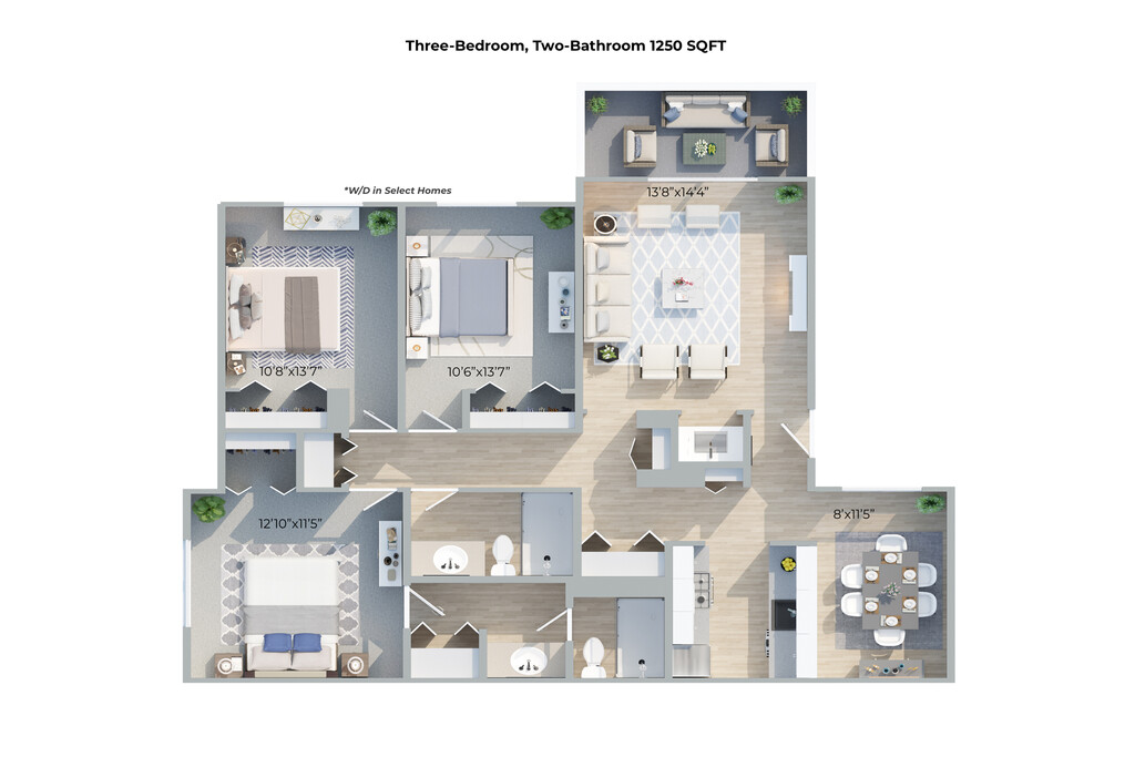 2 Dormitorios, 1.5 Baños, 1050 pies²Disponible AhoraGalería del Modelo