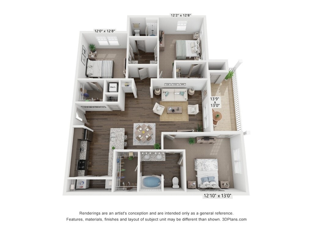 Modelo de apartamento: C13 Dormitorios, 2 Baños, 1488 sq ftDisponible Ahora![]()