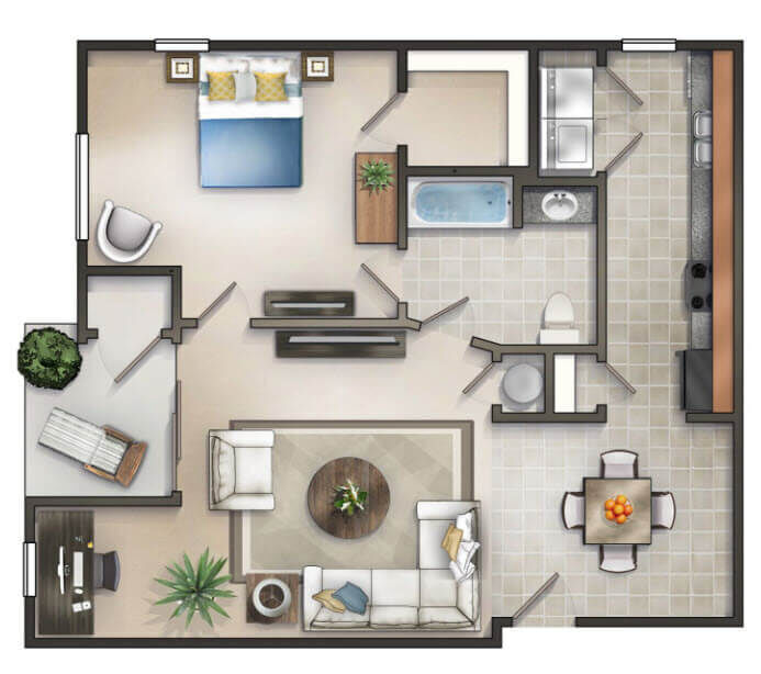1 Dormitorio, 1 Baño, 771 pies²Disponible AhoraGalería del Modelo