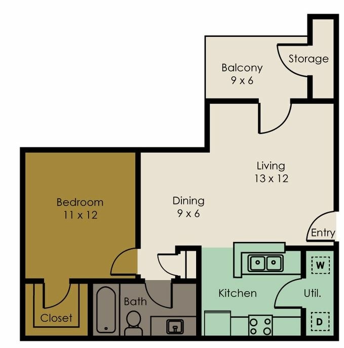 1 Dormitorio, 1 Baño, 642 pies²Disponible AhoraGalería del Modelo