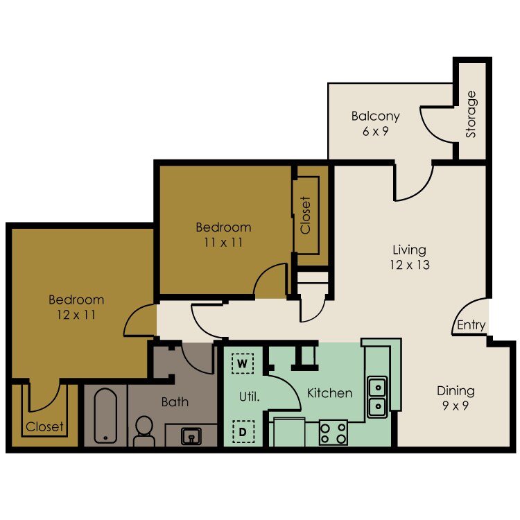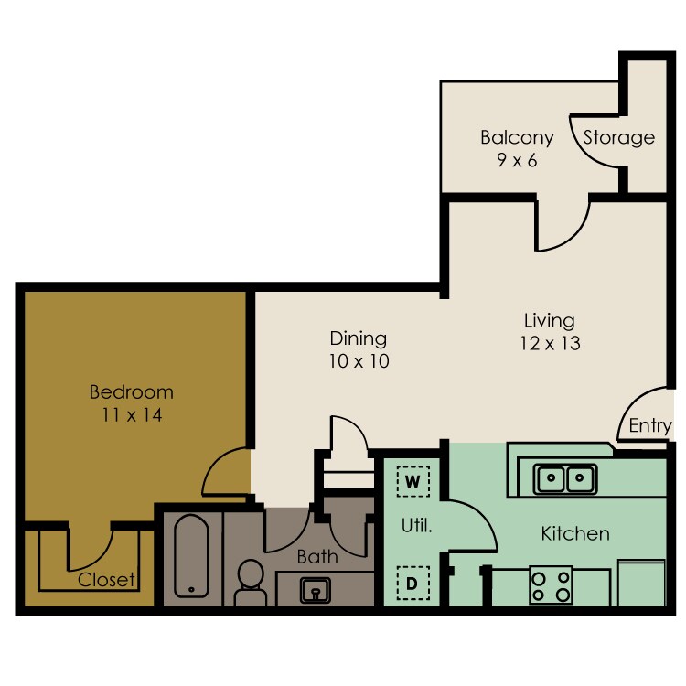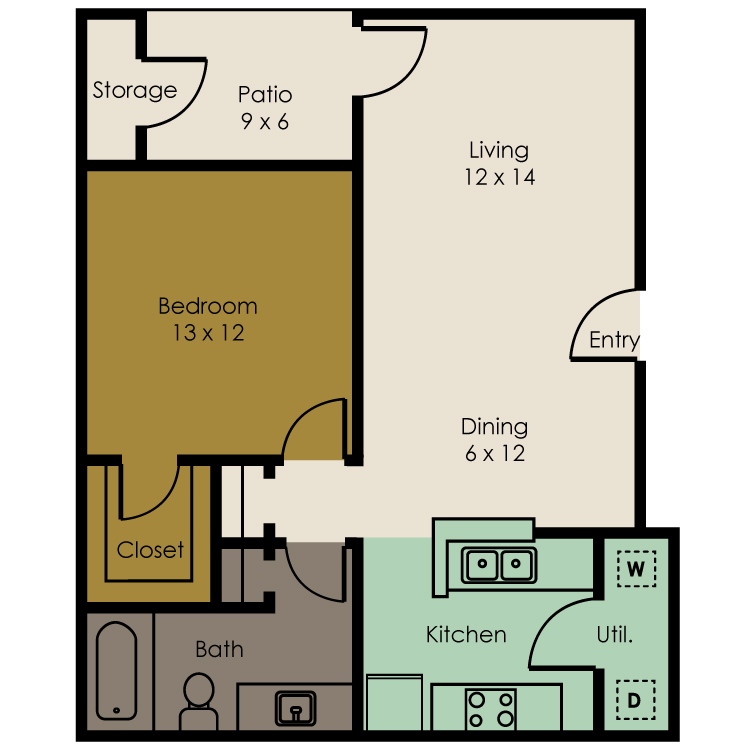 1 Dormitorio, 1 Baño, 750 pies²Disponible AhoraGalería del Modelo