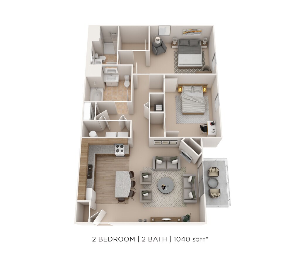 Ver Planos No DisponiblesTwo Bedroom 2 Bath- 1041 sqft