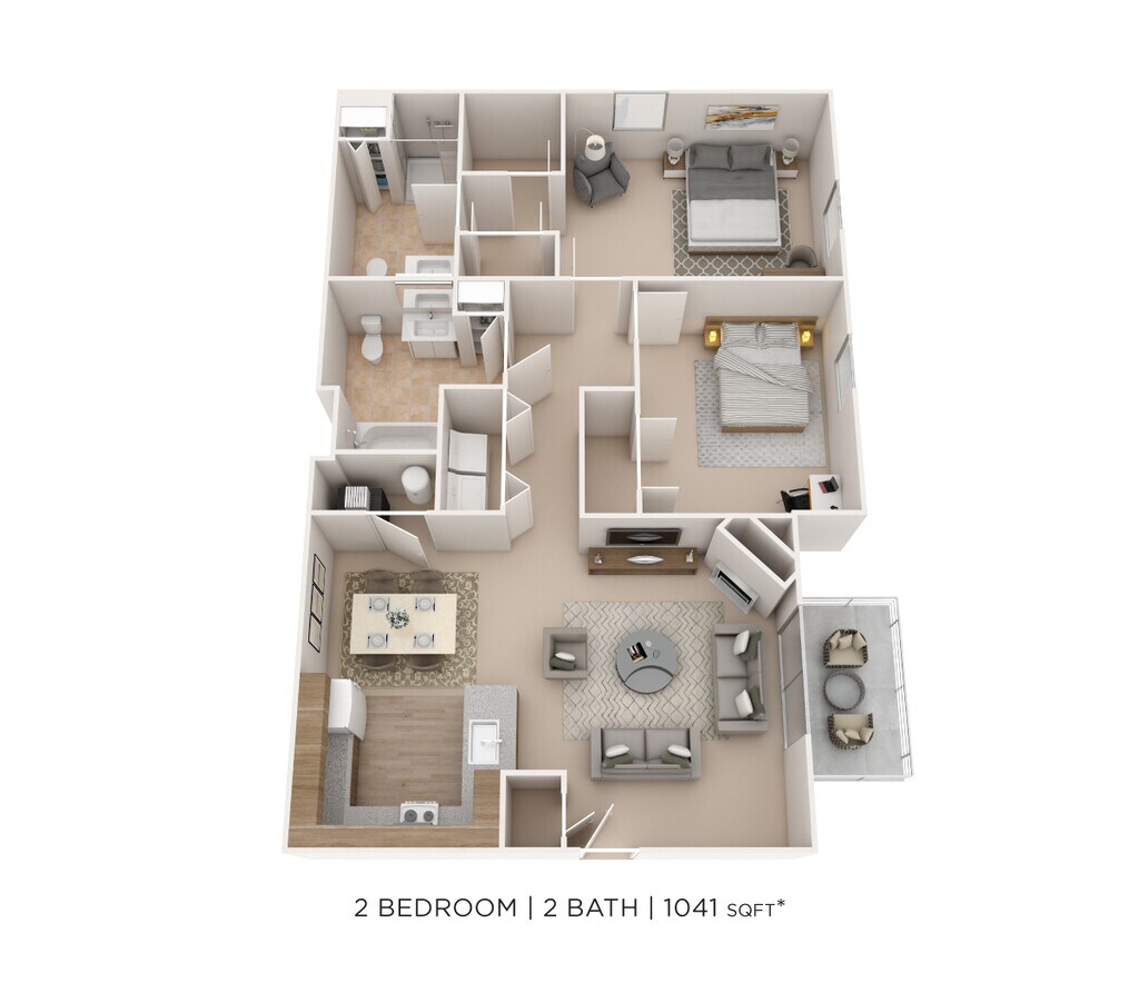 2 Dormitorios, 2 Baños, 1041 pies²Disponible AhoraEl más baratoEsta opción tiene los precios más bajos para este modeloGalería del Modelo
