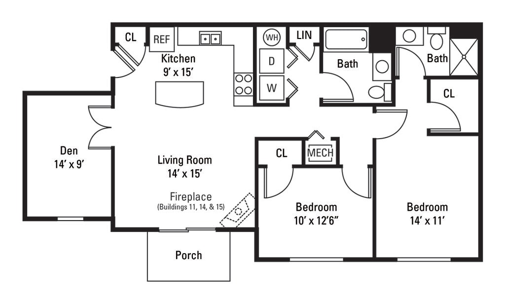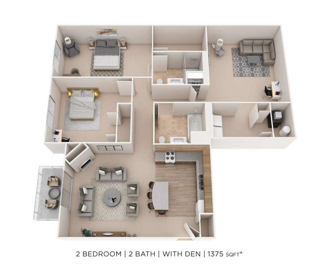 One Bedroom w/ Den- 1032 sqft - Plano 2 2 Dormitorios
