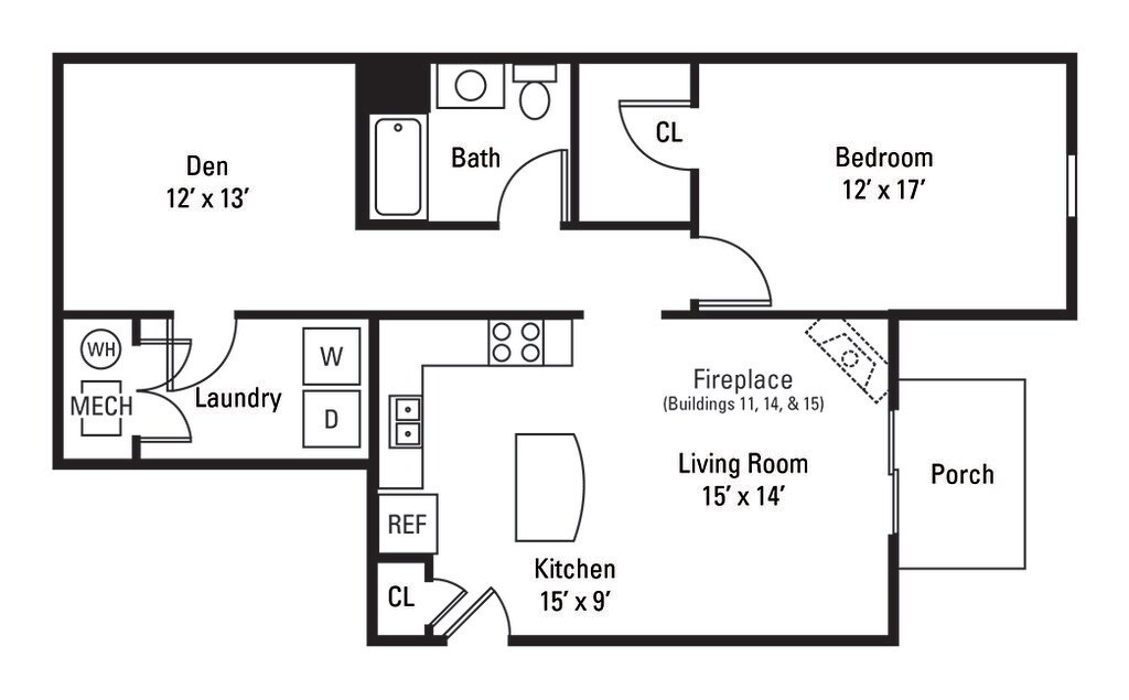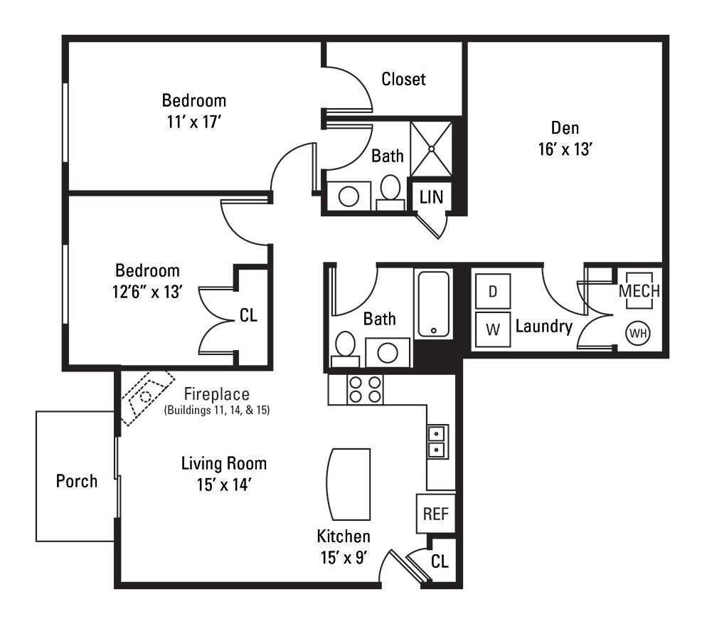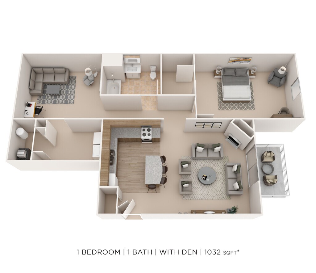 One Bedroom w/ Den- 934 sqft - Plano 2 One Bedroom w/ Den- 1032 sqft