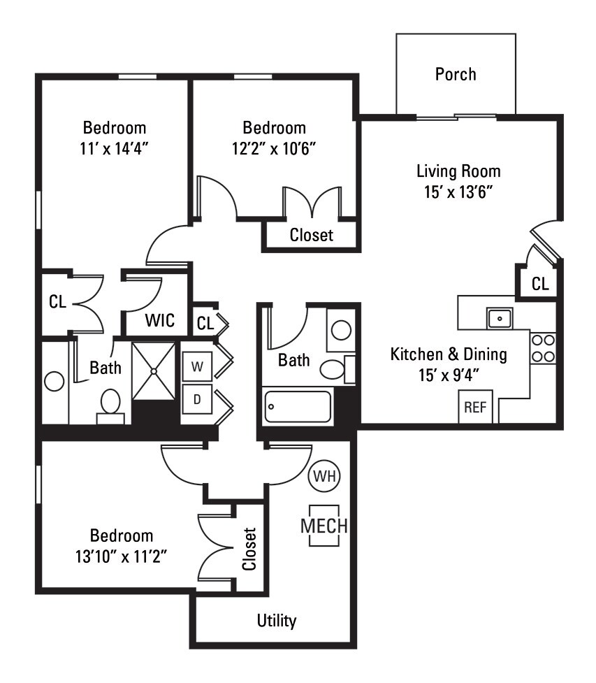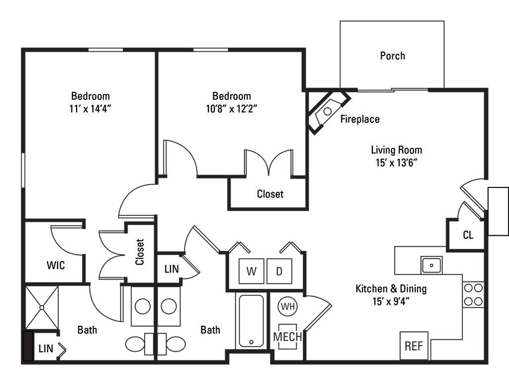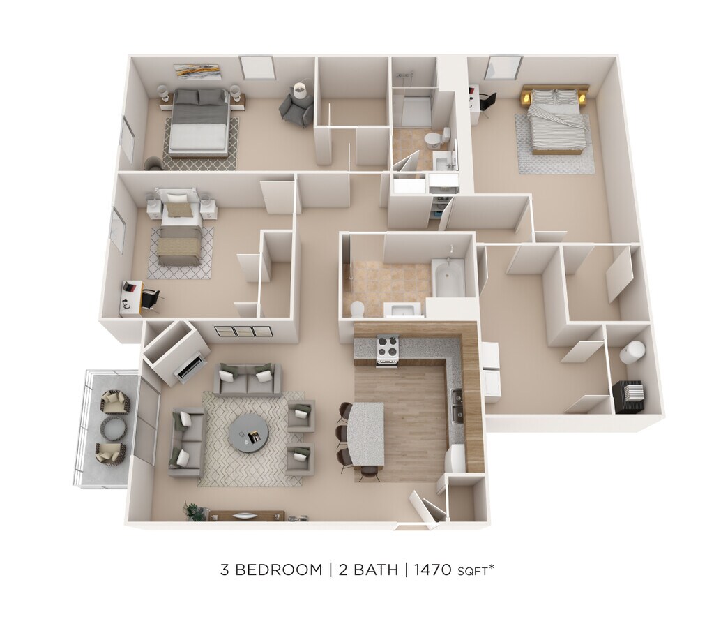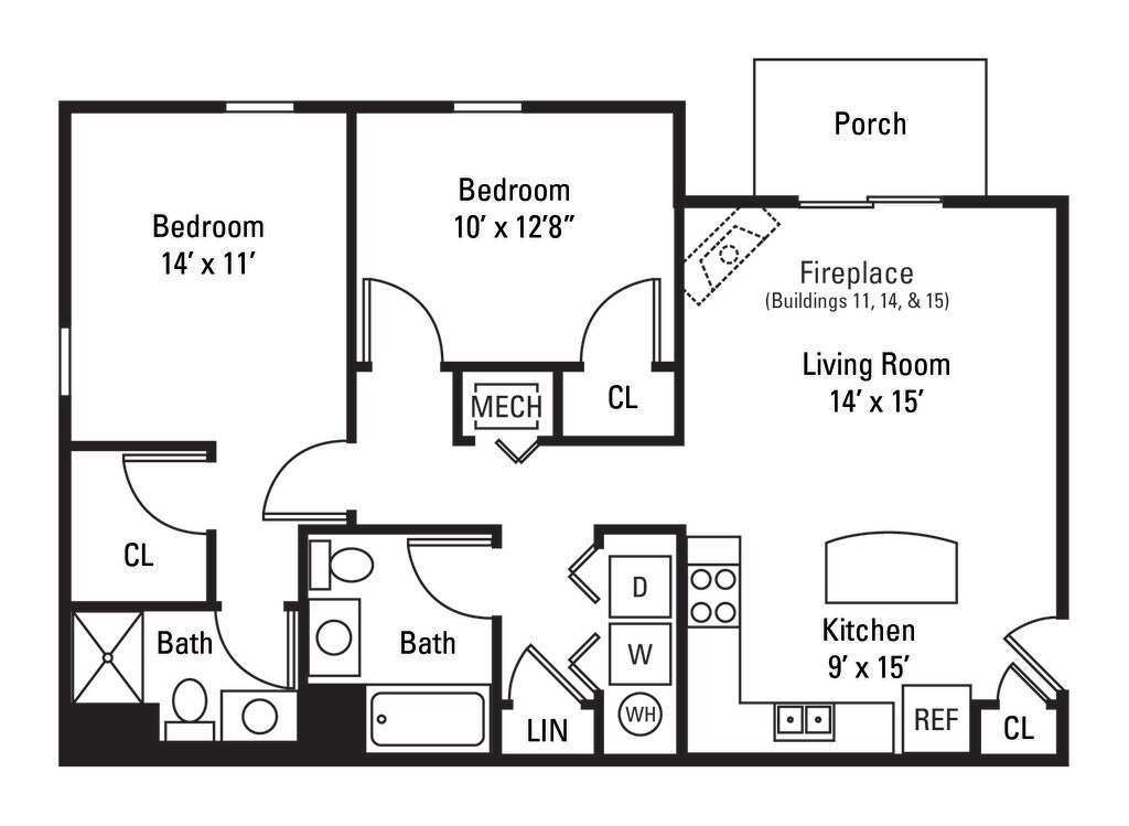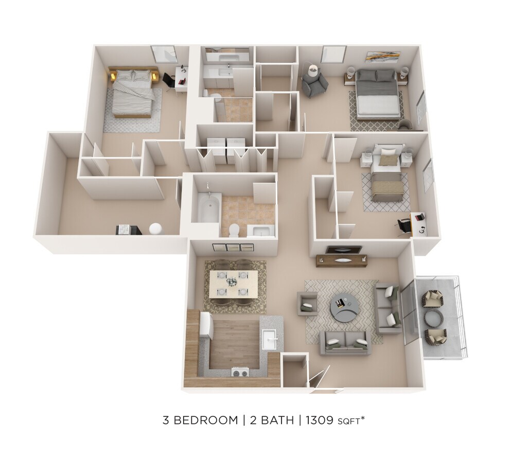 1 Dormitorio, 1 Baño, 1032 pies²El más grandeEsta opción tiene las unidades más grandes para este modeloGalería del Modelo
