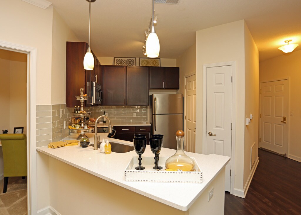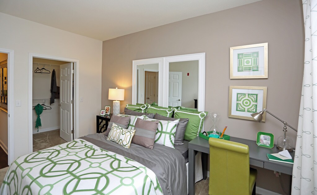 October 19, 2017Our experience, so far, has been very good. A very professional staff, beautiful grounds, and gorgeous apartment. Everything inside is new, nice spacious kitchen, and closets. We love the HUGE walk in closets. Great value for the rent we're paying!Reseña de Apartments.com