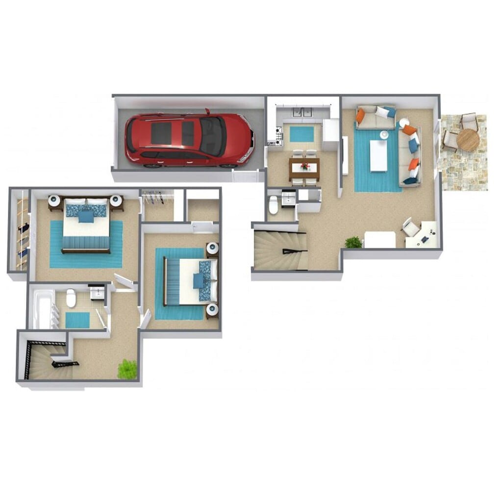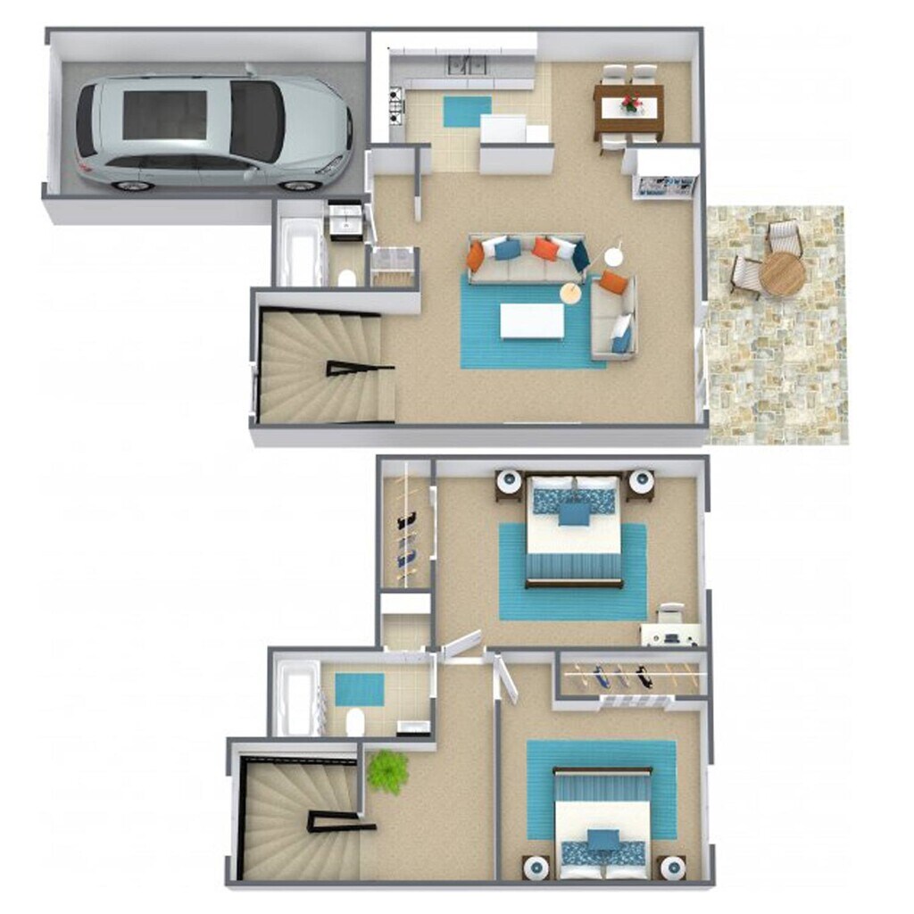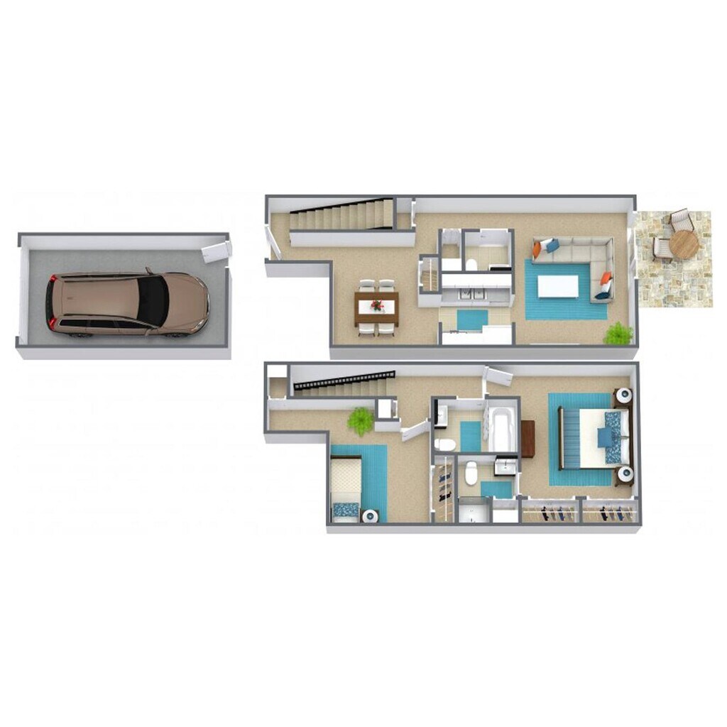 Modelo de apartamento: TownHome - 1 Bedroom 1 Bathroom$1,1001 Dormitorio, 1 Baño, 760 sq ftDisponible January 21, 2026PlanosFotos![]()