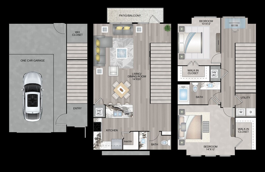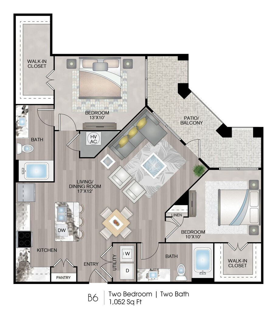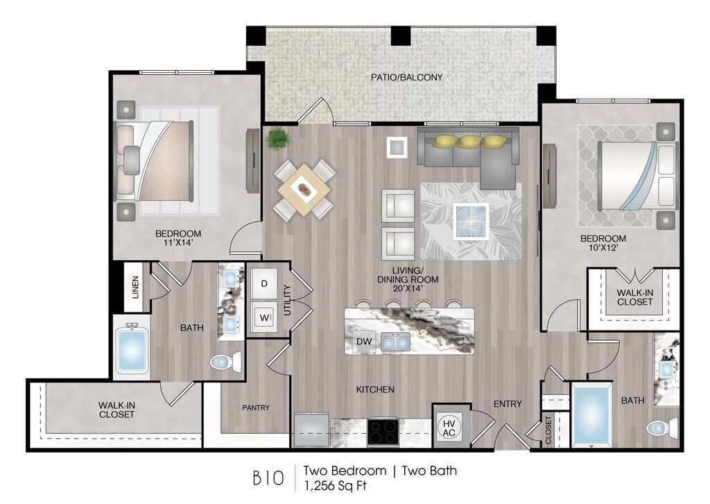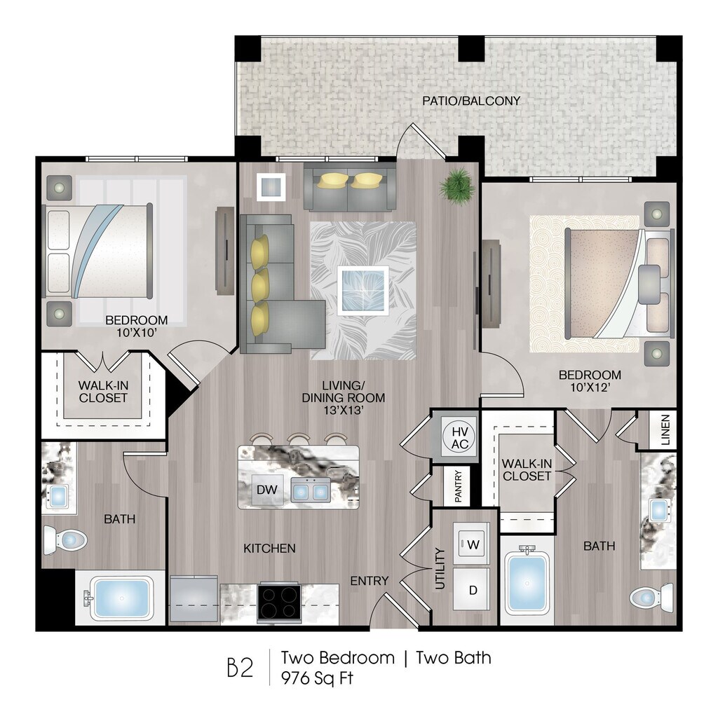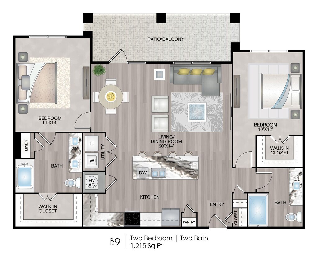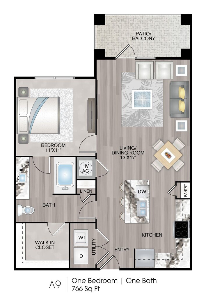 Modelo de apartamento: A9Desde $1,2591 Dormitorio, 1 Baño, 766 sq ftDisponible Ahora![]()