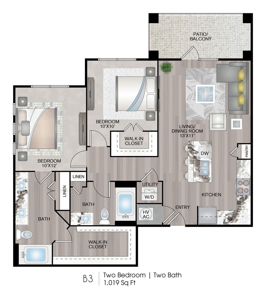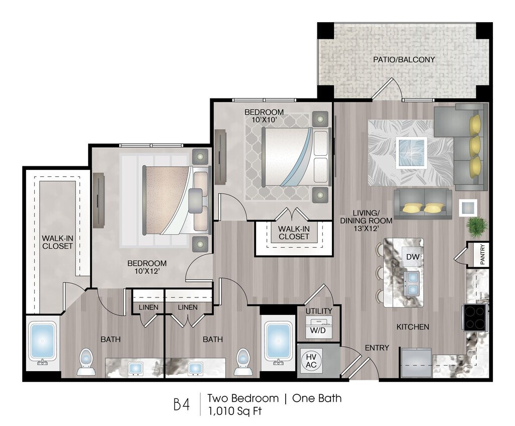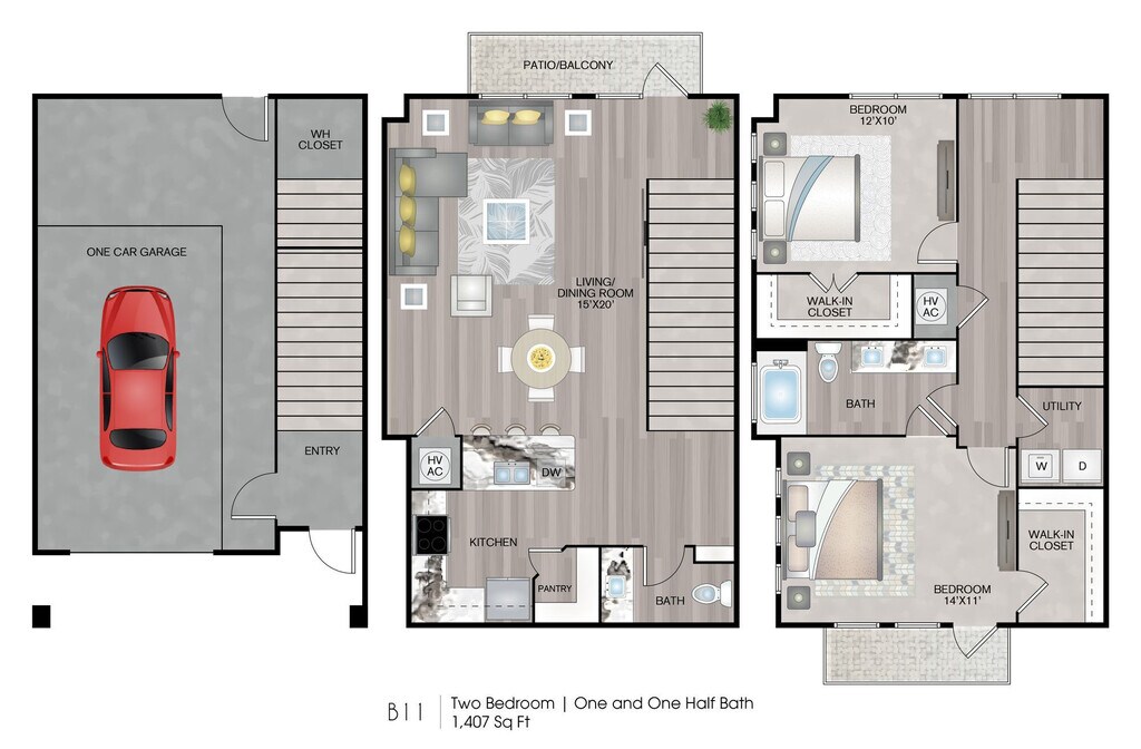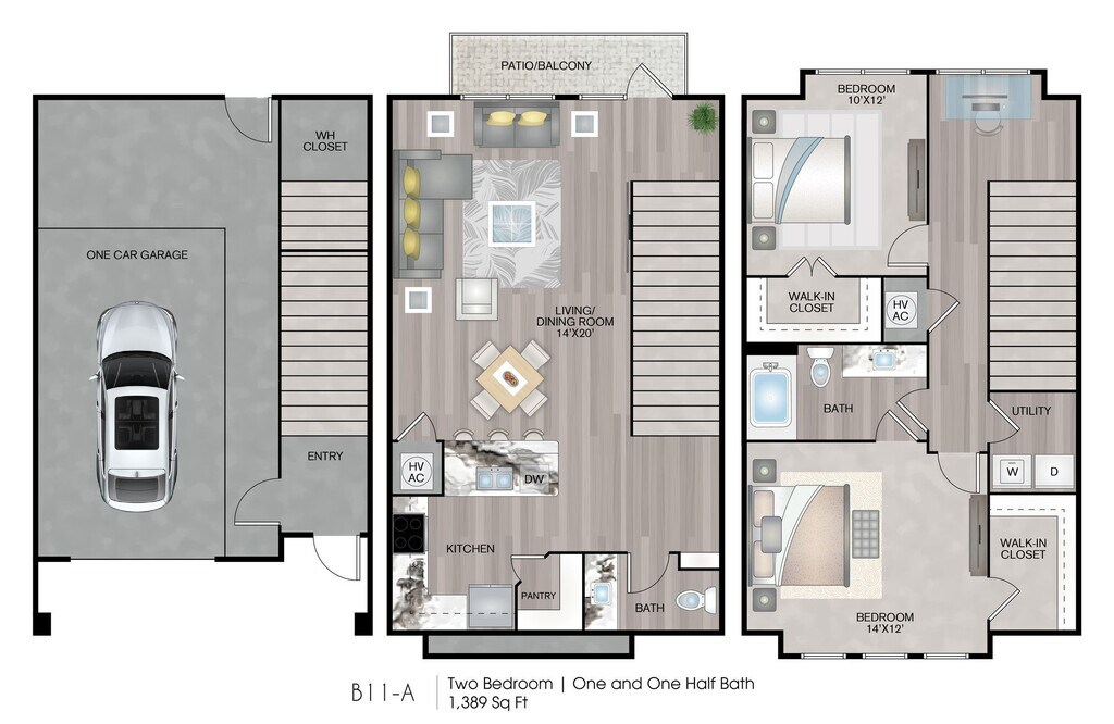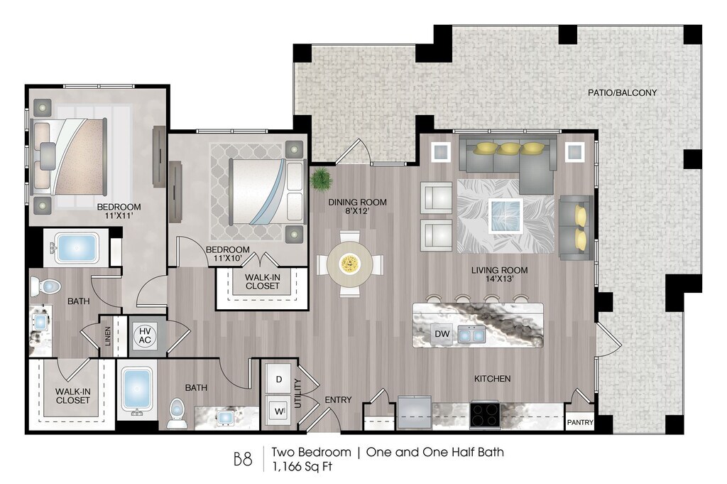 1 Dormitorio, 1 Baño, 766 pies²Disponible AhoraGalería del Modelo