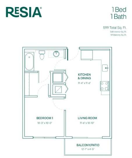 1 Dormitorio, 1 Baño, 599 pies²Disponible AhoraGalería del Modelo