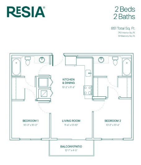 2 Dormitorios, 2 Baños, 851 pies²Disponible AhoraGalería del Modelo