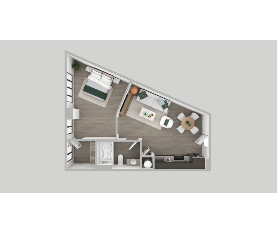 1 Dormitorio, 1 Baño, 506 pies²Disponible AhoraGalería del Modelo