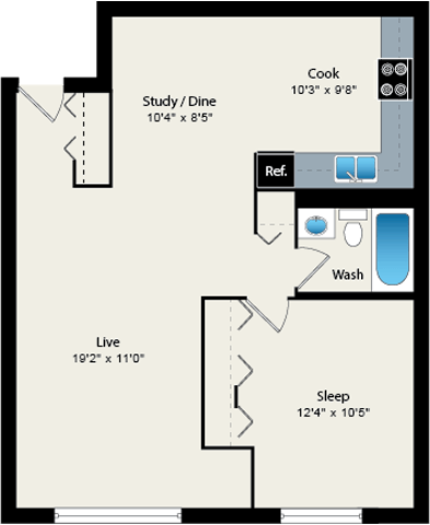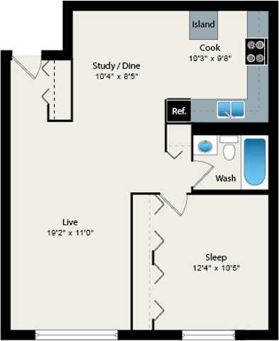 Modelo de apartamento: S7Estudio, 1 Baño, 463 sq ftNo Disponible![]()