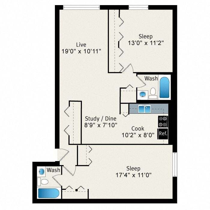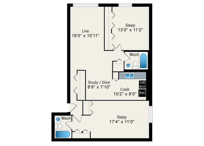 Modelo de apartamento: S11Estudio, 1 Baño, 482 sq ftNo Disponible![]()