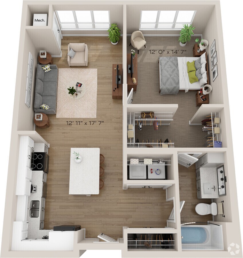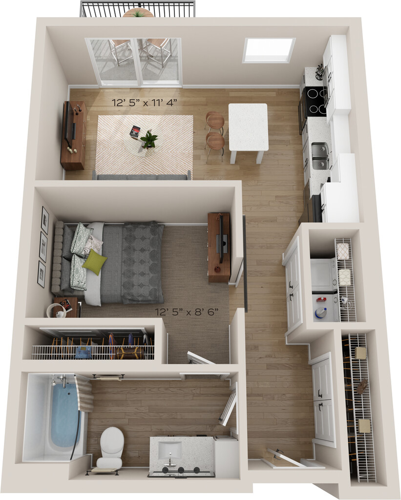 Modelo de apartamento: Robin (1-1)Desde $1,5951 Dormitorio, 1 Baño, 786 sq ftDisponible AhoraPlanosFotos![]()