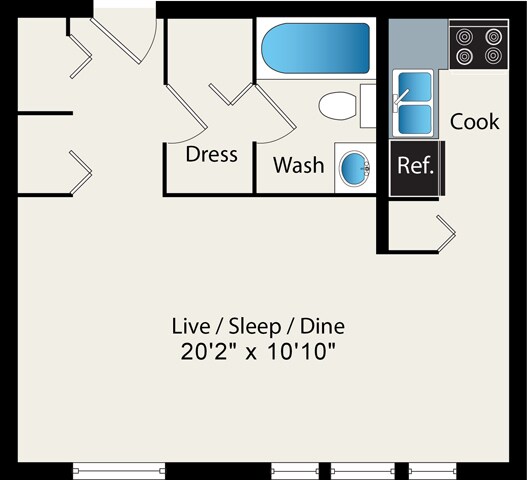 Modelo de apartamento: S1Estudio, 1 Baño, 423 sq ftNo Disponible![]()